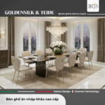 Bộ bàn ăn Golden Silk kết hợp ghế Roberto Cavalli Teide mang đến trải nghiệm phòng ăn hiện đại, tinh tế và đẳng cấp. Mặt bàn mô phỏng dải vân đá Golden Silk tự nhiên, kết hợp ghế thiết kế thanh mảnh, sang trọng. Sản phẩm lý tưởng cho biệt thự, penthouse hay không gian Modern – Luxury. Từng chi tiết đều toát lên sự hoàn thiện tinh xảo và phong cách thượng lưu.